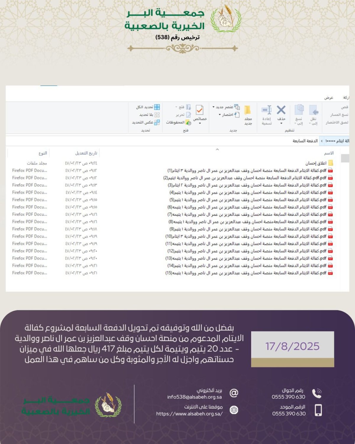 توزيع بطاقات العثيم ( سنابل الخير ) شهر صفر 1447هـ