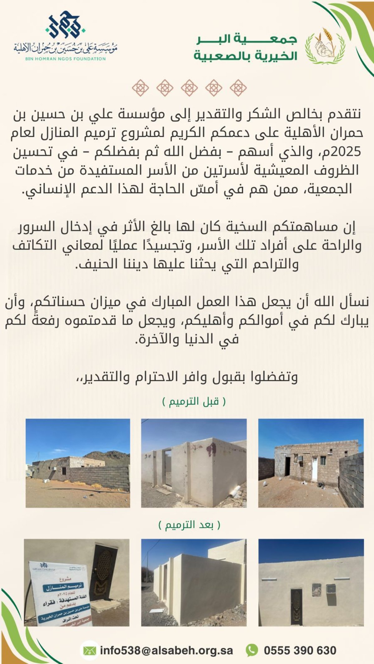 مشروع ترميم المنازل المدعوم من مؤسسة بن حمران الأهلية